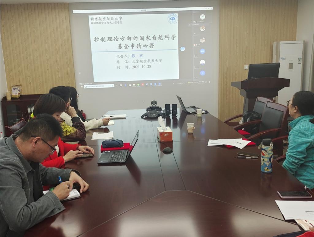 学科建设办公室张明光副主任致辞,并向人工智能学部的各位委员颁发聘书,张主任的讲话为此次活动的开展营造了良好的氛围。北京航空航天大学铁林副教授作线上报告,铁林老师从基金申请的目的、基金申请侧重点以及如何写好申请书等方面分享了自己申报基金的宝贵经验。报告引起参会者的热烈反响,各位青年学者争相以提问的形式同铁林老师进行经历分享与心得交流。