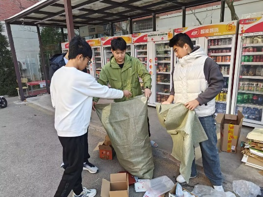 活动前期,学院志愿者团队通过网络进行广泛宣传,引导同学们积极参与废品回收活动,并了解垃圾分类和资源回收的重要性。活动期间,志愿者来到B3、A17宿舍楼下,收集同学们积攒的废品,包括塑料瓶、废纸、快递盒等。同时,志愿者们还耐心讲解废品回收与分类知识,引导同学们正确分类。收集到的废品经过统一分类整理后,由志愿者们运送到繁星广场进行称重回收。活动的收益将无偿捐献给公益组织,为公益事业添砖加瓦。