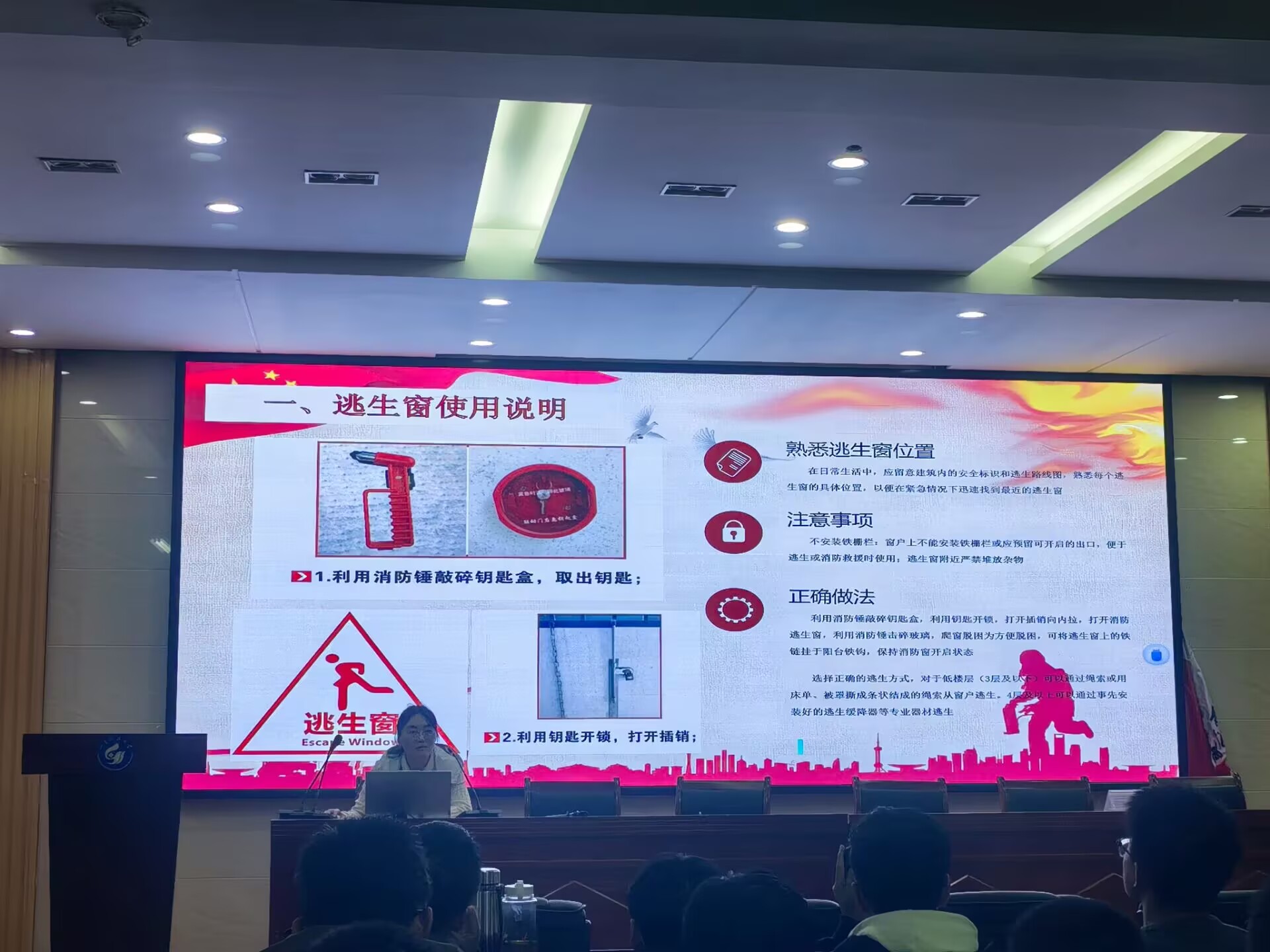 本次自查重点检查了逃生窗钥匙是否缺失、能否正常使用、逃生窗能否正常开启等问题,通过现场演示和实际操作的方式,让学生基本掌握紧急情况下熟练打开逃生窗的逃生方法。培训会上,辅导员老师结合近期的各类典型火灾案例,用通俗易懂的语言,深入浅出地对逃生窗及逃生锤的使用方法进行讲解。培训过程中,同学们认真听讲,积极讨论,收获颇多。