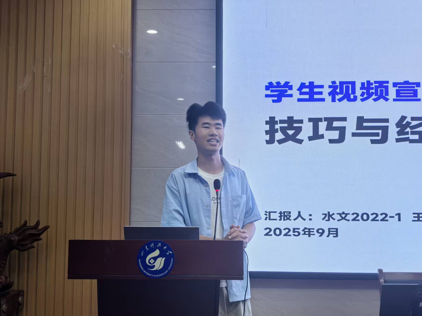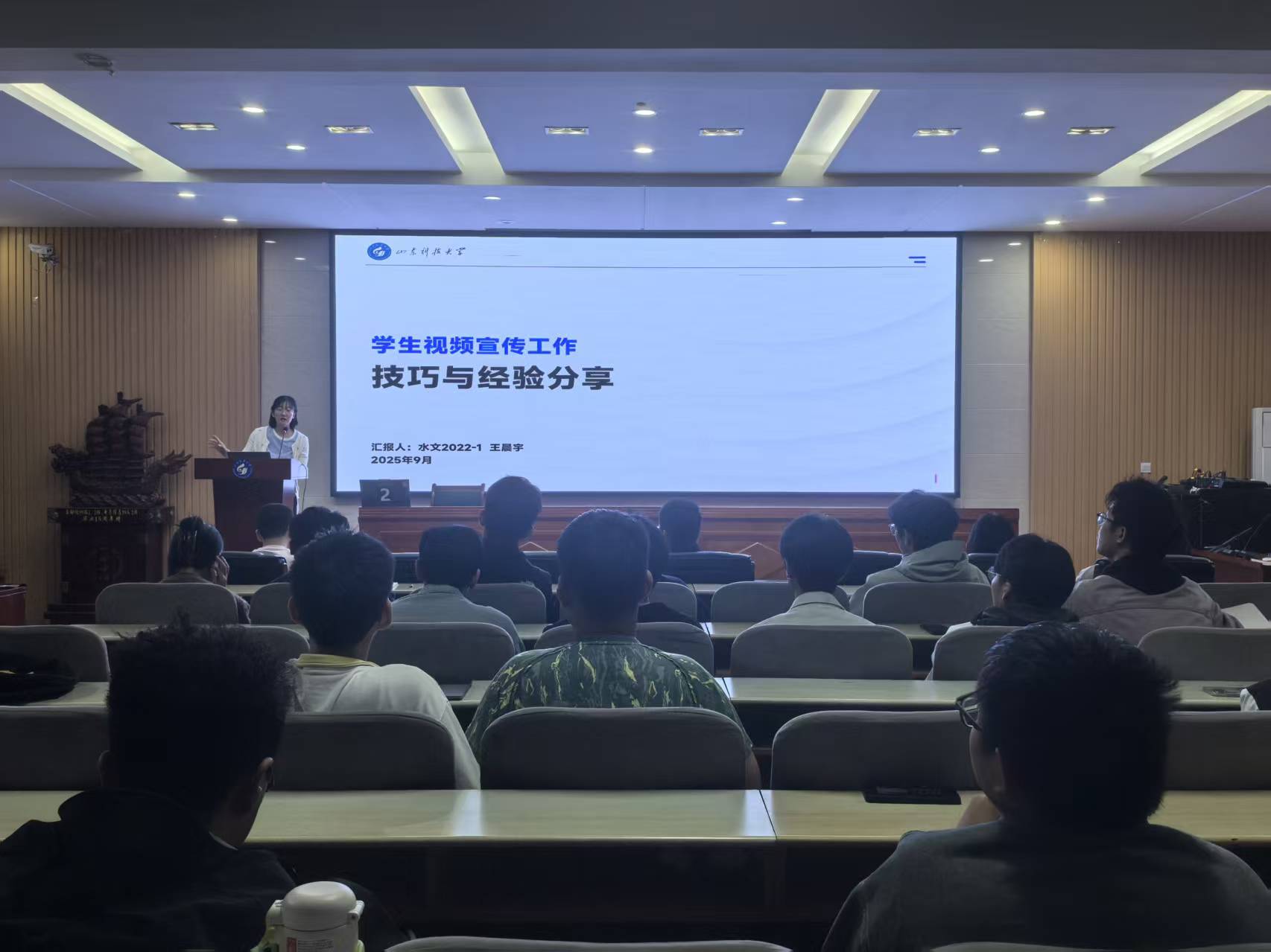 本次培训邀请到两位实践经验丰富的学生骨干进行分享。主讲人郝恩睿(自动化2022-2班长)为退伍复学学生,曾任部队新闻报道员,现任校融媒体中心分管主席,摄影实战经验丰富,屡获省级以上奖项。另一位主讲人王晨宇(地科学院2022级)曾于区级融媒体中心实习,其优秀作品发布于学习强国等平台,在校期间主导参与多部宣传片、微团课的视频创作,全流程制作能力突出。