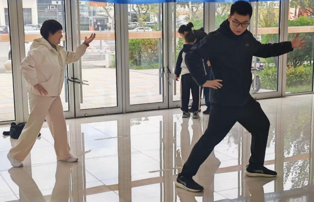 志愿者精神饱满,带领老人们做起简化太极拳。他们动作轻柔,耐心讲解每一个招式的要领,在志愿者们热情的感染下,老人们渐渐舒展筋骨,沉浸其中。一招一式,虽不似专业武者般刚劲,却充分展现了“动静结合,颐养身心”的太极精髓。现场气氛融洽,欢声笑语与晨光交织,绘成了一幅动人的画面。