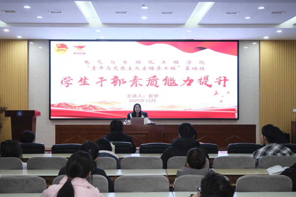 12月29日,taptap点点体育“青马工程” 基础班,在J11-118举办学生干部素质能力提升专题培训,本次培训由秦梦担任主讲人,学院青马工程基础班全体学生干部参与。