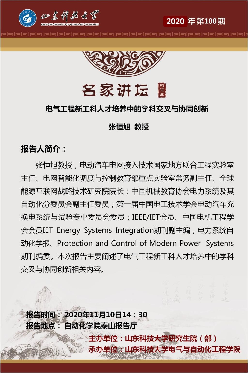 taptap点点体育承办第100期“名家讲坛”:张恒旭教授