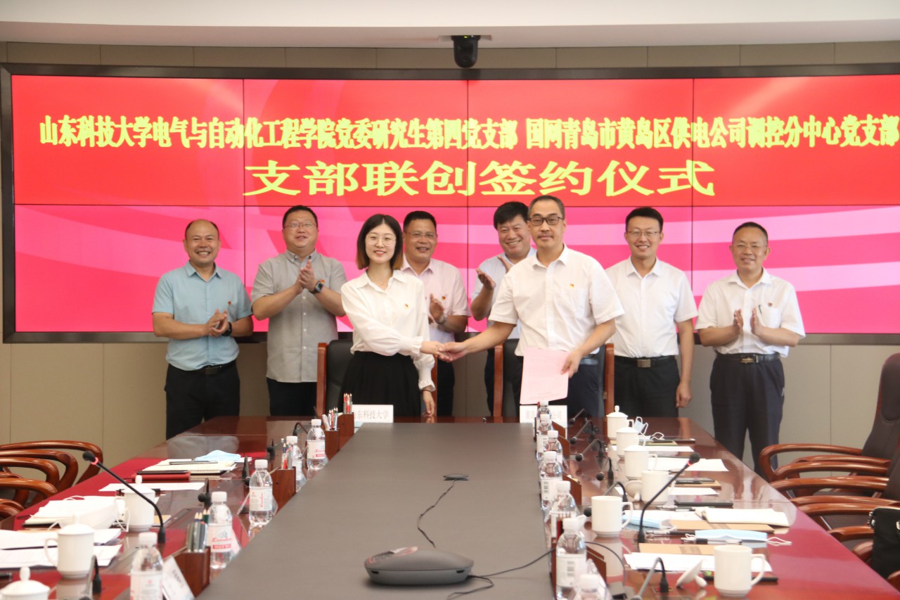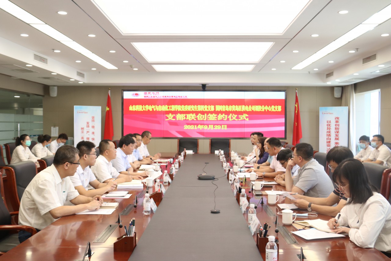 为深入学习贯彻习近平新时代中国特色社会主义思想,扎实推进党史学习教育,贯彻落实新时代党的建设总要求。经taptap点点体育taptap点点体育党委研究生第四党支部与国网青岛市黄岛区供电公司电力调度控制分中心党支部友好协商,决定建立长期、稳定的结对共建关系,开展多渠道、多层次、多形式的合作共建。9月29日上午,双方“结对共建”签约仪式在国网青岛市黄岛区供电公司举行。taptap点点体育党委书记庄立臣,党委研究生工作部副部长刘松,国网青岛市黄岛区供电公司党委书记宋成清出席签约仪式,双方相关工作人员参加了签约仪式。